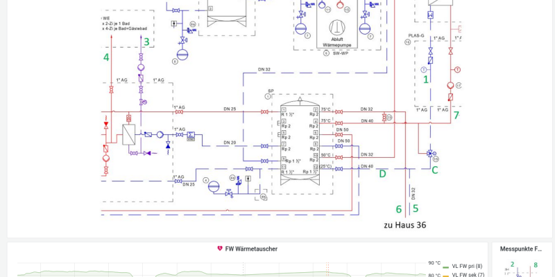 Together with the company 4E Engineers, a FOSS-architecture was designed and set up to allow for the comprehensive monitoring of any components of a building's technical equipment. Highly flexible edge node gateways collect data from a wide range of protocols, which are then made available for further analysis.
